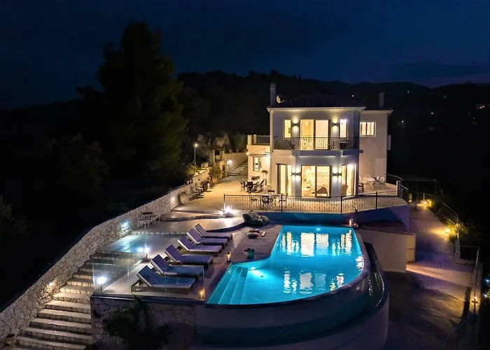 Offering views of the Ionian Sea, Skyfall Villa is located within 25 minutes' walk of Limni / Strofi. The 4-bedroom villa features opportunities for windsurfing and hiking in the area, nearly a 15-minute ride from Faneromenis Monastery.